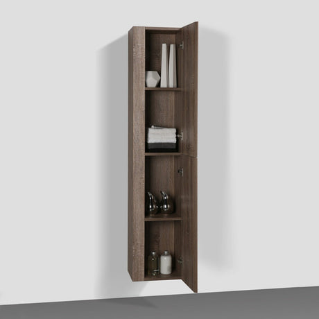 Jade S. Oak Floating / Wall Mounted Bathroom Linen Side Cabinet With Soft Closing Doors