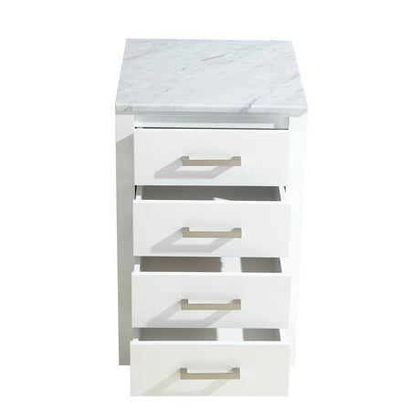 Jacques 20" White Side Cabinet, White Carrara Marble Top