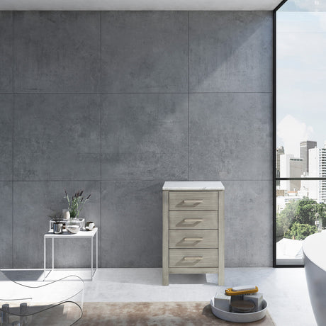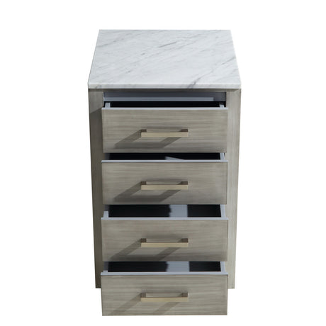 Jacques 20 in. Freestanding Distressed Grey Bathroom Linen Side Cabinet, White Carrara Marble Top