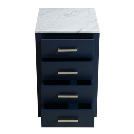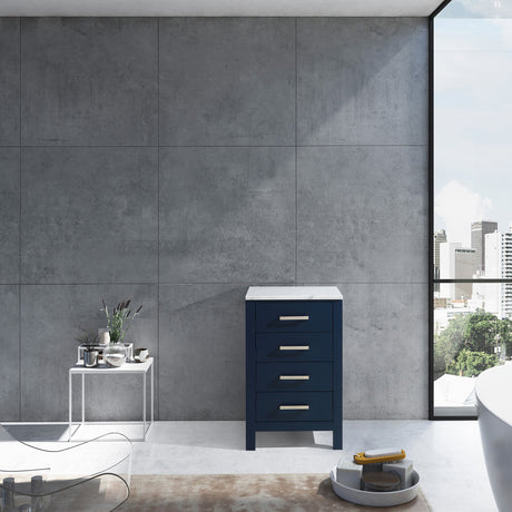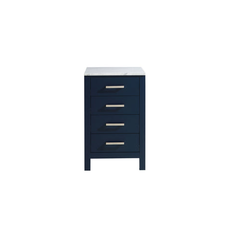 Jacques 20 in. Freestanding Navy Blue Bathroom Linen Side Cabinet, White Carrara Marble Top