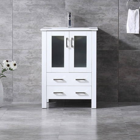 Volez 24" White Single Vanity, Integrated Top, White Integrated Square Sink and 22" Mirror