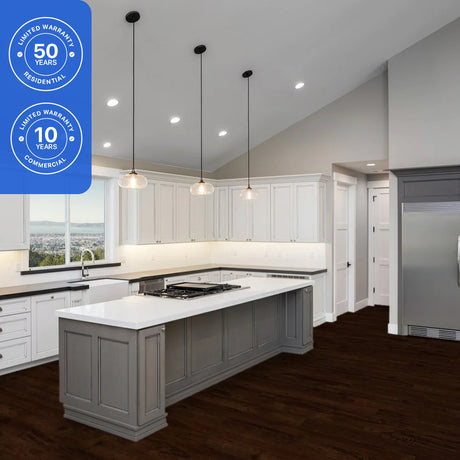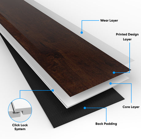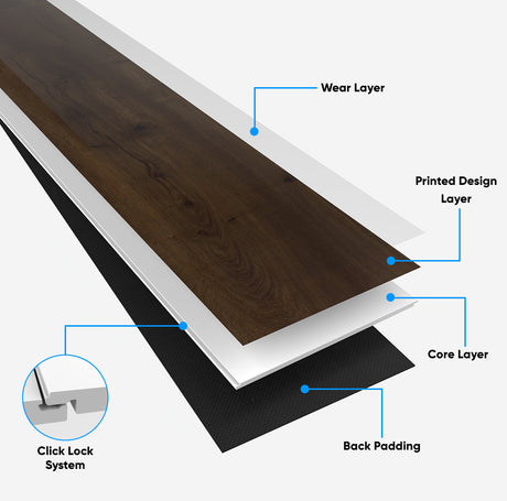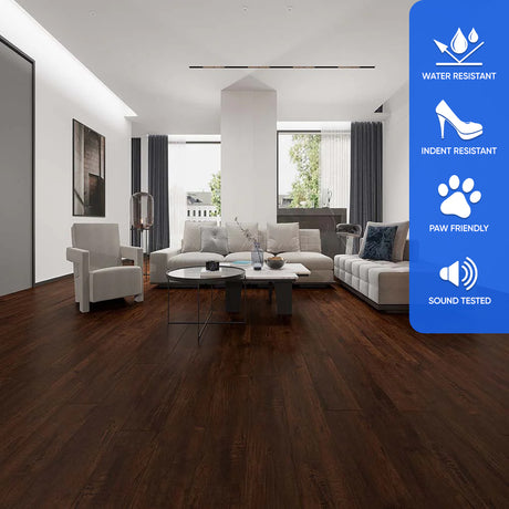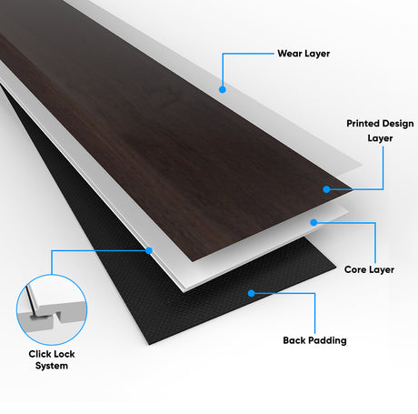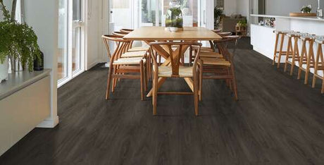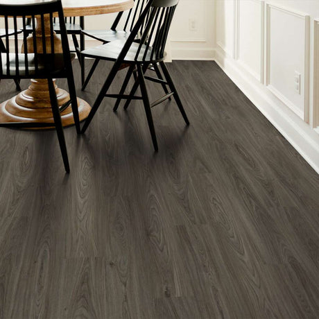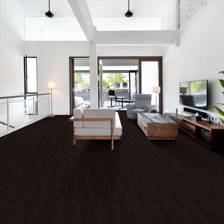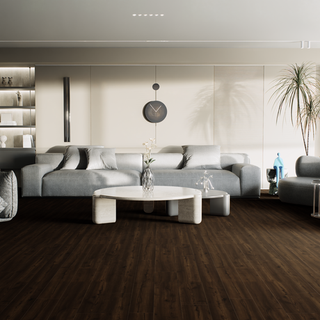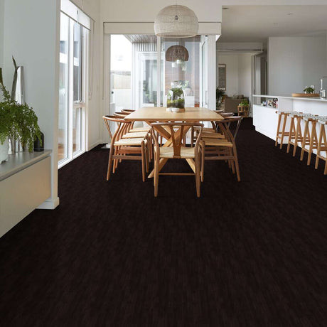 SPC flooring is a fantastic decision for high-traffic regions or spaces inclined to dampness, like kitchens and washrooms. This flooring material is produced using a blend of limestone and stabilizers, bringing about an exceptionally tough and waterproof item. Our black vinyl plank flooring is made of SPC material and is accessible in rich shades like espresso and dark elm.