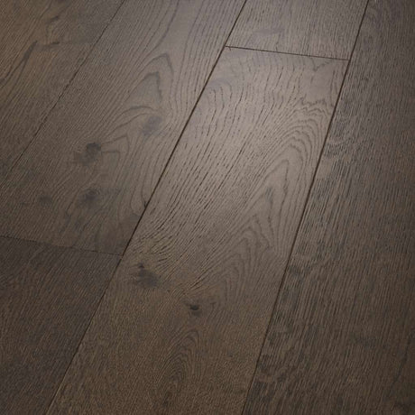 Engineered hardwood consists of a hardwood top layer bonded over multiple layers of plywood, providing stability and resistance to moisture. Our black wood flooring options in engineered hardwood are available in various shades like Black Fill Oak and Kingswood Oak.