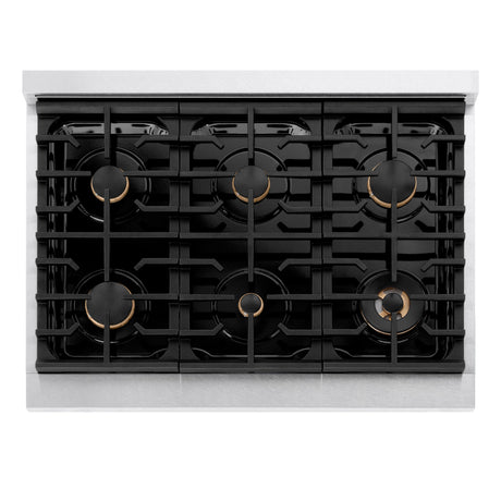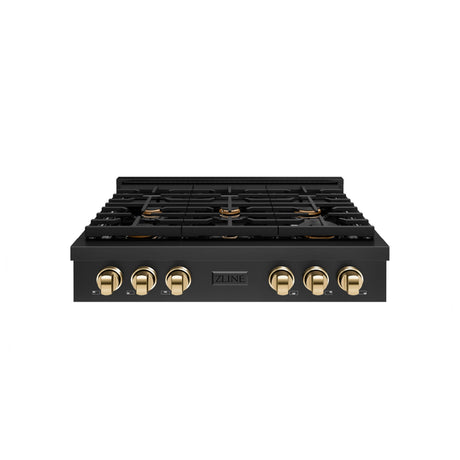 ZLINE 36" Gas Cooktop with 6 Gas Brass Burners and Black Porcelain Top (RC-BR-36-PBT)