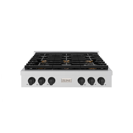 ZLINE 36" Gas Cooktop with 6 Gas Burners and Black Porcelain Top (RC36-PBT)