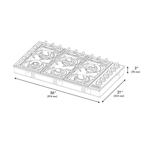 ZLINE 36" Gas Cooktop with 6 Gas Burners (RC36)