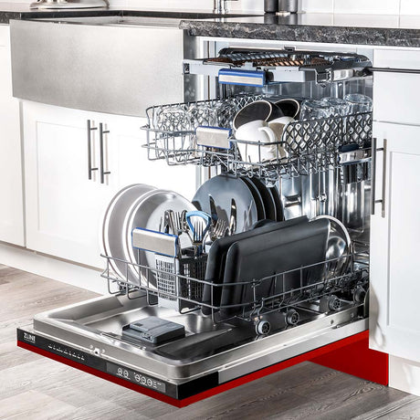 ZLINE 24 in. Top Control Dishwasher with Red Gloss Panel and Modern Style Handle, 52dBa (DW-RG-H-24)