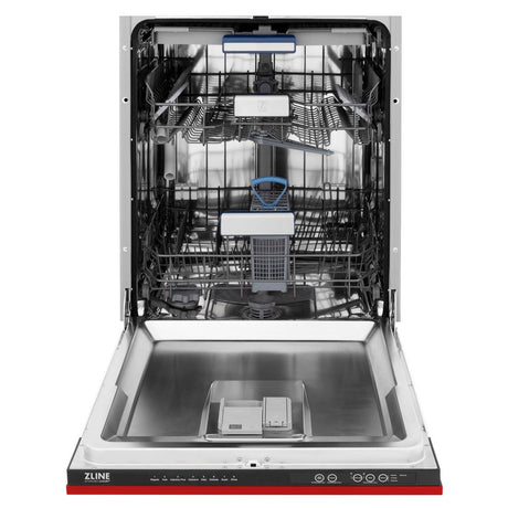 ZLINE 24 in. Top Control Dishwasher with Red Matte Panel and Modern Style Handle, 52dBa (DW-RM-H-24)
