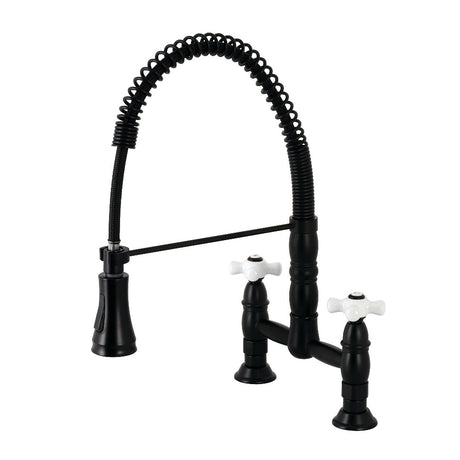 Restoration 8" Bridge Kitchen Faucet With Sprayer Includes Cross Handles For Easy Rotation