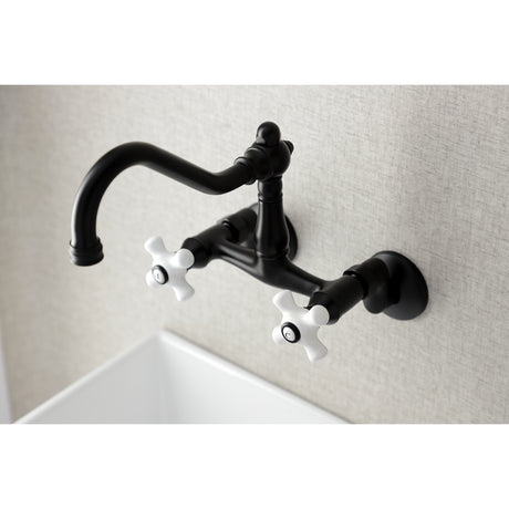 Essex Two Handle Wall Mount Kitchen Faucet With Cross Handle Lever