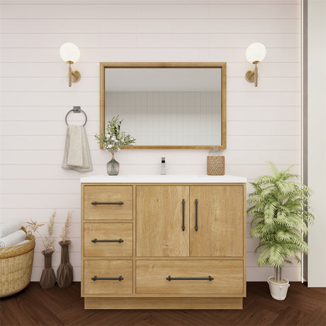 Carla 42 In. Freestanding Single Sink Bathroom Vanity with Acrylic Top & Right Side Drawers