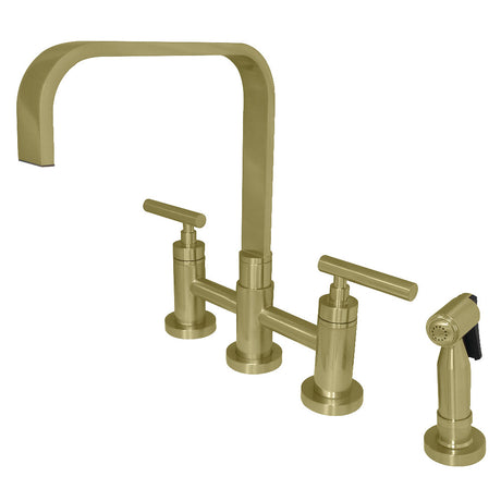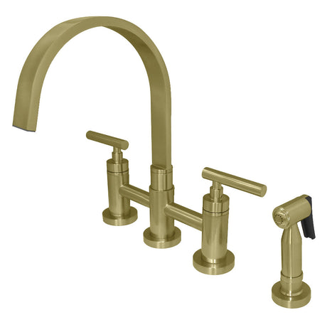 Concord Two Handle Bridge Kitchen Faucet W/ Brass Side Sprayer, Brass & Zinc Alloy Construction
