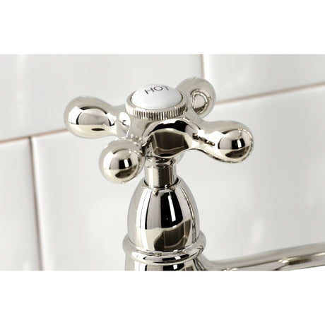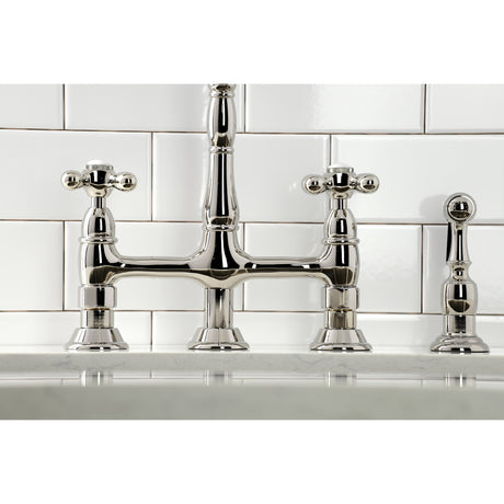 Restoration 8" Bridge Kitchen Faucet With Sprayer Includes Cross Handles For Easy Rotation