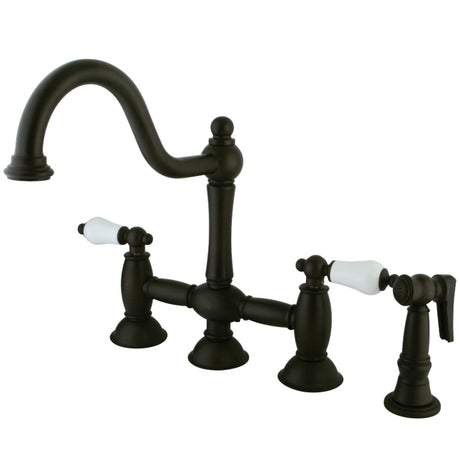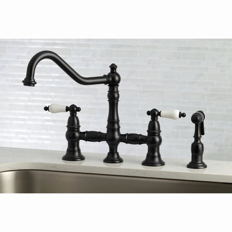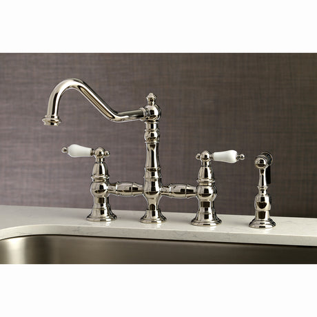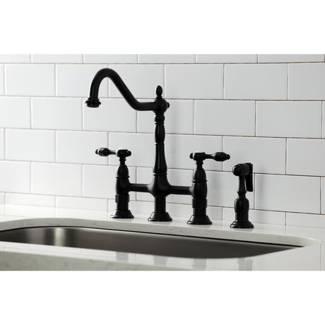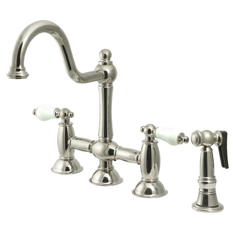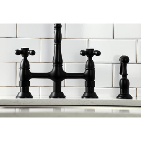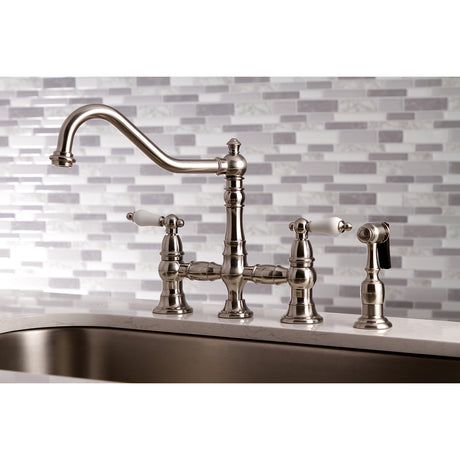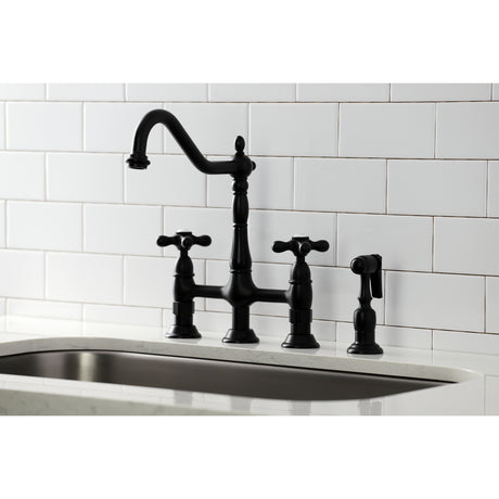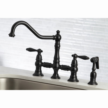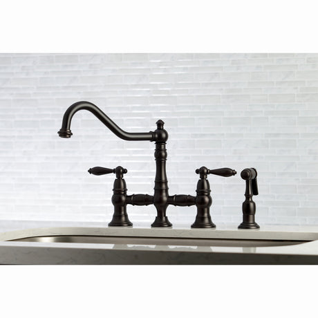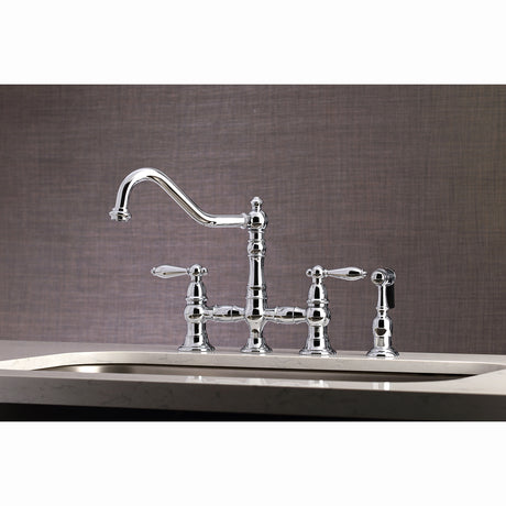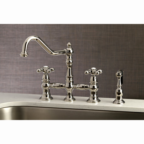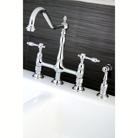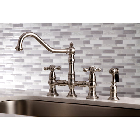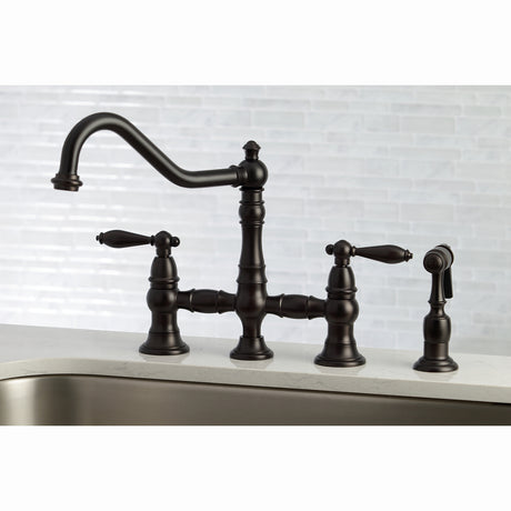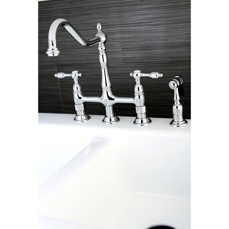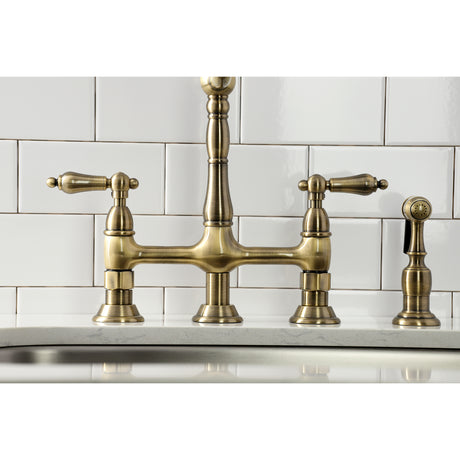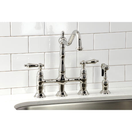 Heritage Bridge Kitchen Faucet with Brass Sprayer