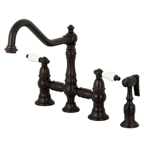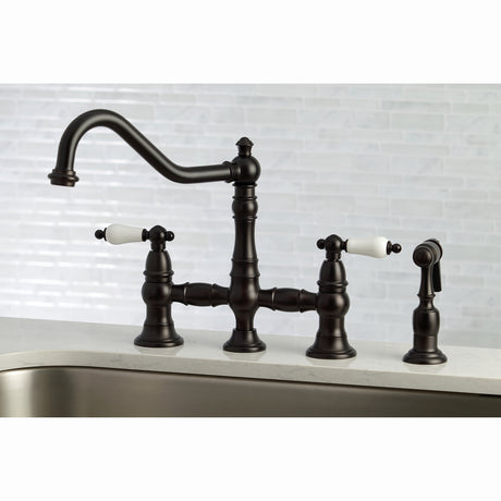 Restoration Bridge Kitchen Faucet with Brass Sprayer