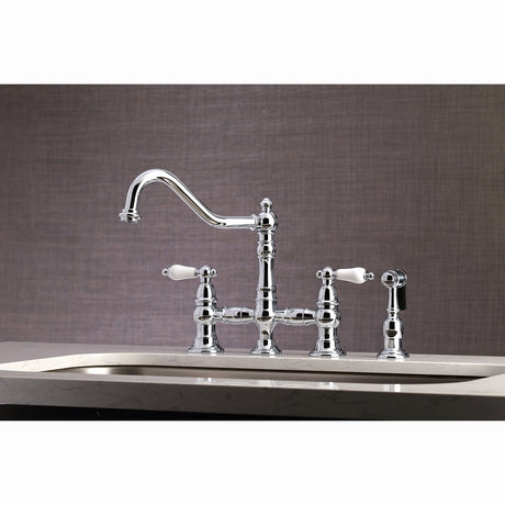 Duchess Bridge Four Hole Kitchen Faucet With Brass Sprayer