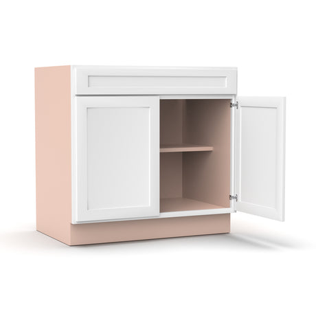 Liberty Shaker White Double Door Kitchen Base Cabinet - 36"W x 34.5"H x 24"D