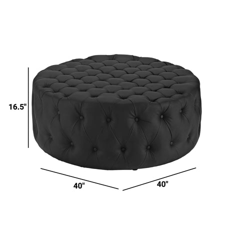 Luxurious Round Design Amour Upholstered Vinyl Oversized Tufted Button Ottoman - Black