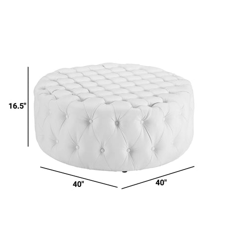 Anthem Tufted Button Round Faux Leather Ottoman, White