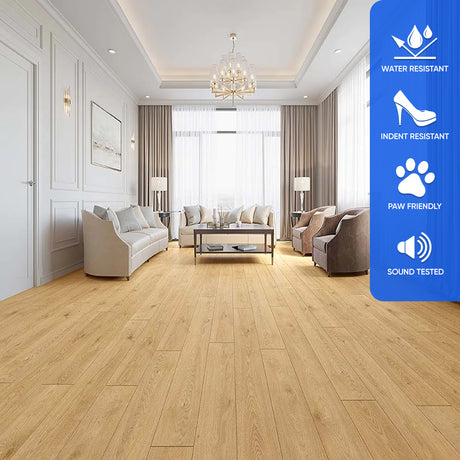 Warm, golden tones define a variety of alternatives that are referred to as golden flooring. These floors can be constructed from various materials, each with its own advantages, like vinyl, wood plastic composite (WPC), or stone plastic composite (SPC). Golden floor is well known for combining style and coziness to provide any area with an extravagant, inviting appearance. It is a flexible alternative that may fit various decor styles while keeping durability and ease of care, making it suitable for both traditional and modern environments.
