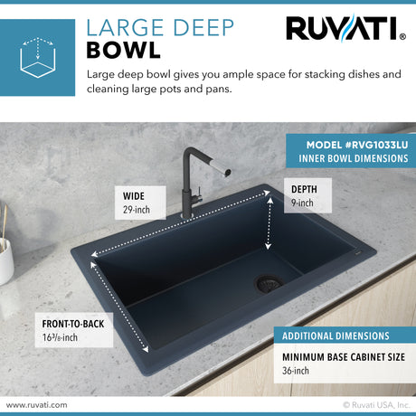 33 x 19 inch Granite Composite Undermount Single Bowl Kitchen Sink