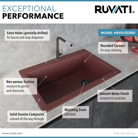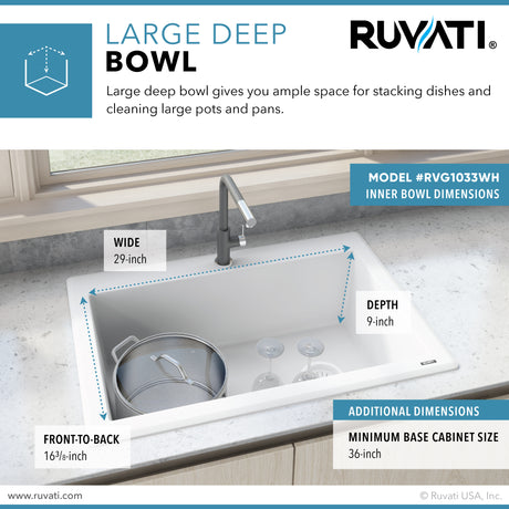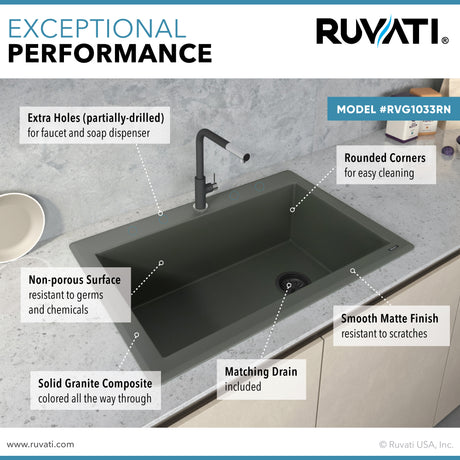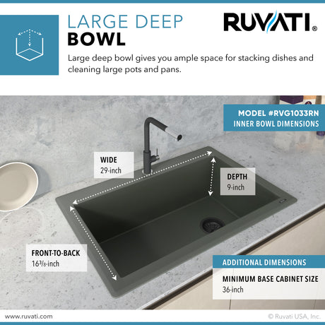 33 x 22 inch Drop-in Topmount Granite Composite Single Bowl Sink