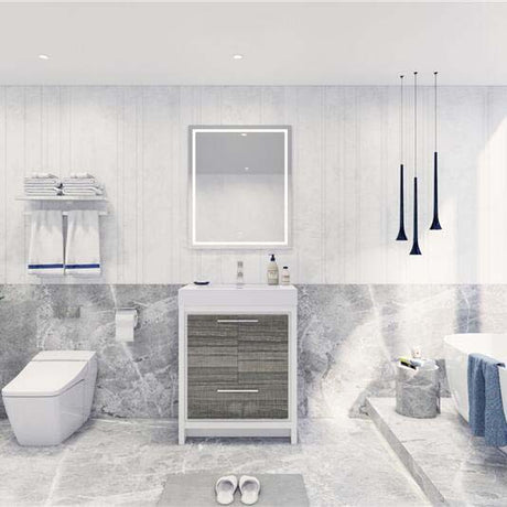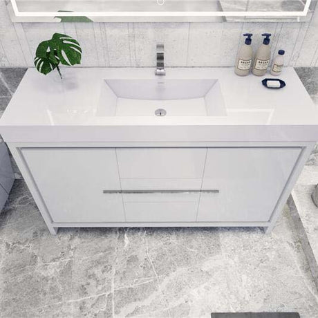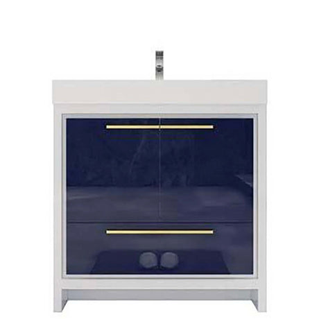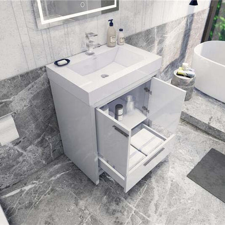 Modern Ashley Freestanding Bathroom Vanity With Acrylic Single Sink, 2 Door & Drawer