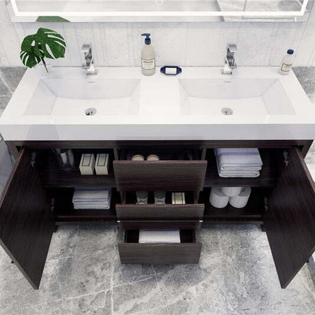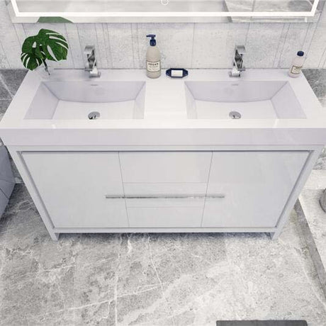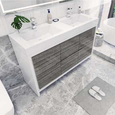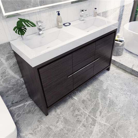 Blossom 60 In. Floating Double Sink Bathroom Vanity With Acrylic Sink Top, & Aluminum Alloy Frame