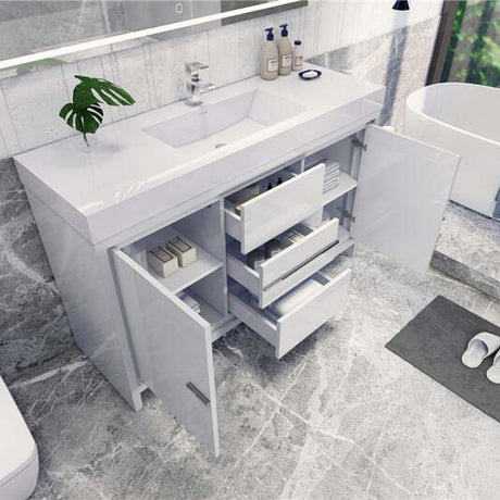 Ashley 42 Inch Freestanding Bathroom Vanity With Reinforced Acrylic Sink, 4 Drawers & 2 Doors