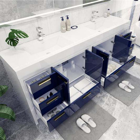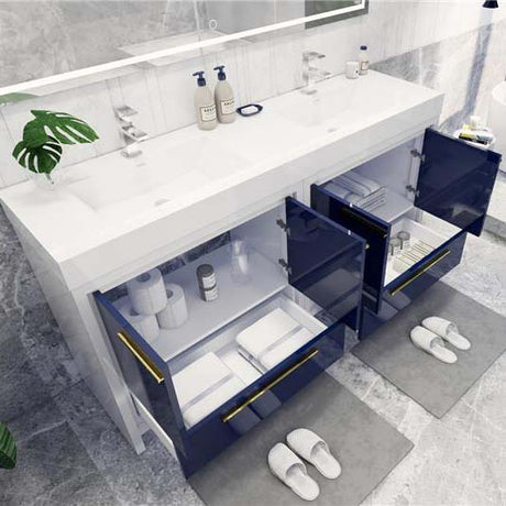 Blossom 72 In. Floating Double Sink Bathroom Vanity With Acrylic Sink Top & Aluminum Alloy Frame