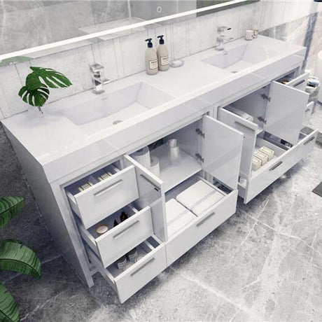 Blossom 84 In. Floating Double Sink Bathroom Vanity With Acrylic Sink Top & Aluminum Alloy Frame