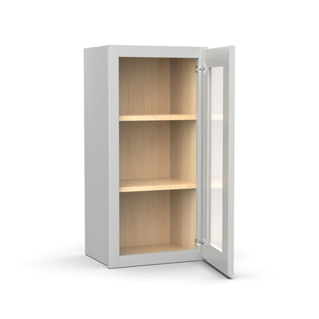 Liberty Shaker Ashen - 15 Inch Single Glass Door Wall Cabinet - 15" Width x 30" Height x 12" Depth