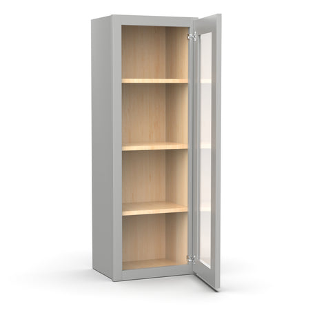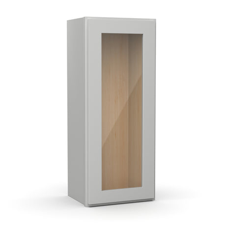 Liberty Shaker Ashen - 15 Inch Single Glass Door Wall Cabinet - 15" Width x 42" Height x 12" Depth