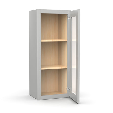 Liberty Shaker Ashen - 15 Inch Single Glass Door Wall Cabinet - 15" Width x 36" Height x 12" Depth