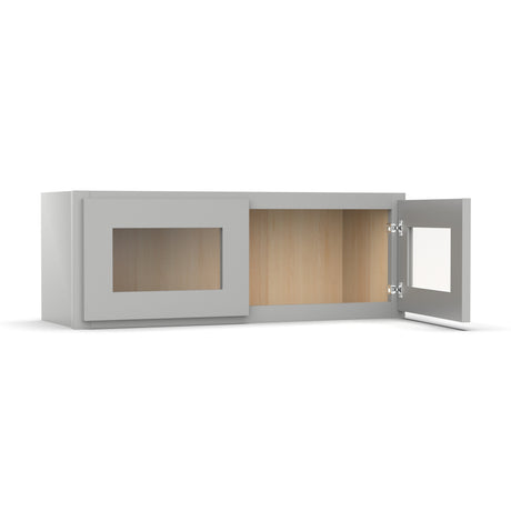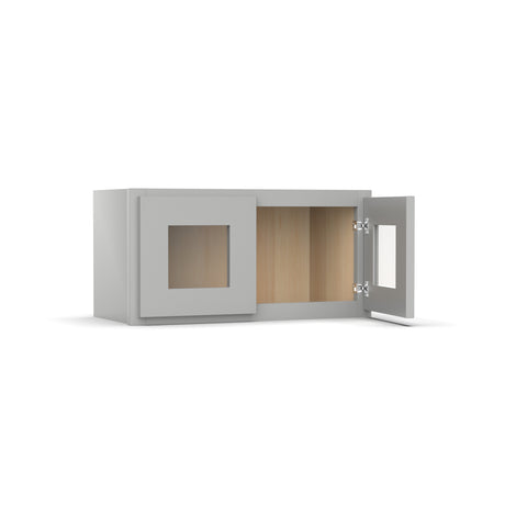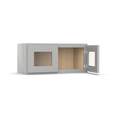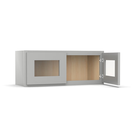 Liberty Shaker Ashen - 30 Inch Double Glass Door Wall Cabinet - 30" Width x 12" Height x 12" Depth