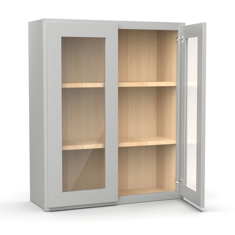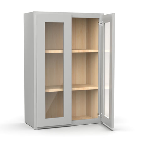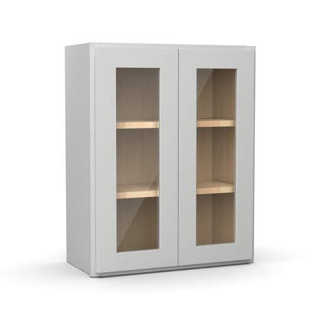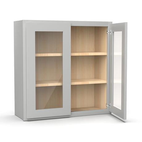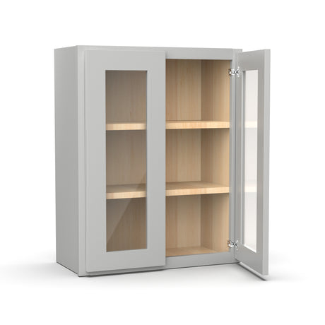 Liberty Shaker Ashen - 30 Inch Double Glass Door Wall Cabinet - 30" Width x 30" Height x 12" Depth
