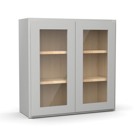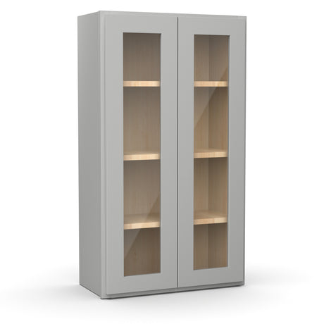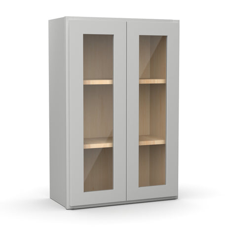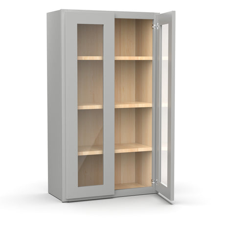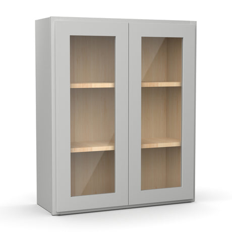 Liberty Shaker Ashen - 30 Inch Double Glass Door Wall Cabinet - 30" Width x 36" Height x 12" Depth