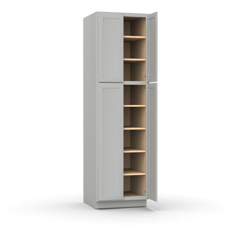Liberty Shaker Ashen - 24 Inch Double Door Pantry Tall Cabinet - 24" Width x 96" Height x 24" Depth