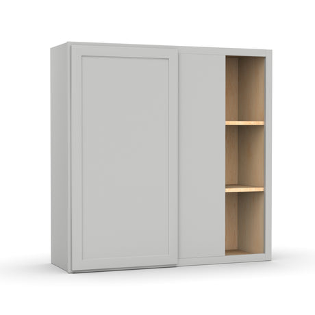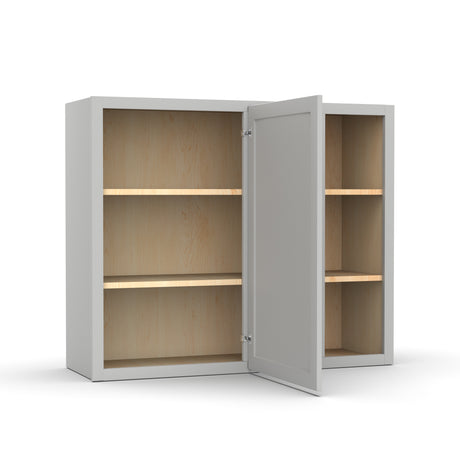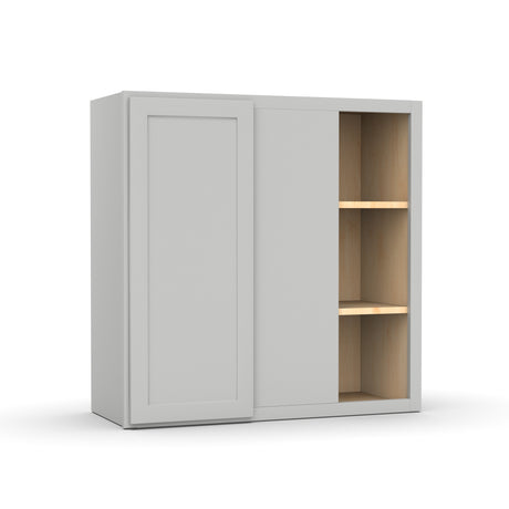 Liberty Shaker Ashen - 27 Inch Diagonal Corner Wall Cabinet - 27" Width x 36" Height x 15" Depth