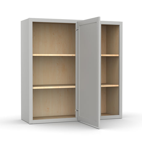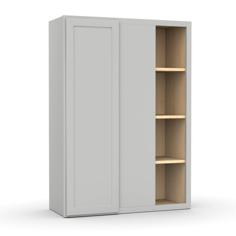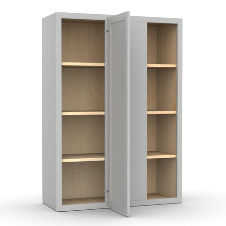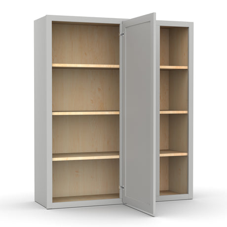 Liberty Shaker Ashen - 27 Inch Diagonal Corner Wall Cabinet - 27" Width x 42" Height x 15" Depth