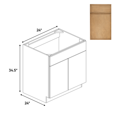 Slim Shaker Karamel - 24 Inch Sink Base Cabinet - 24" Width x 34.5" Height x 24" Depth