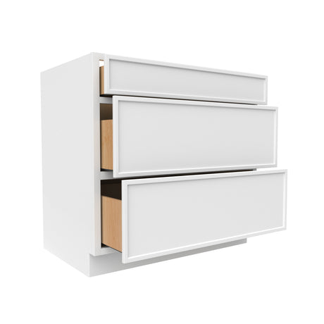 Slim Shaker Oatmeal - 36 Inch Three Drawer Base Cabinet - 36" Width x 34.5" Height x 24" Depth