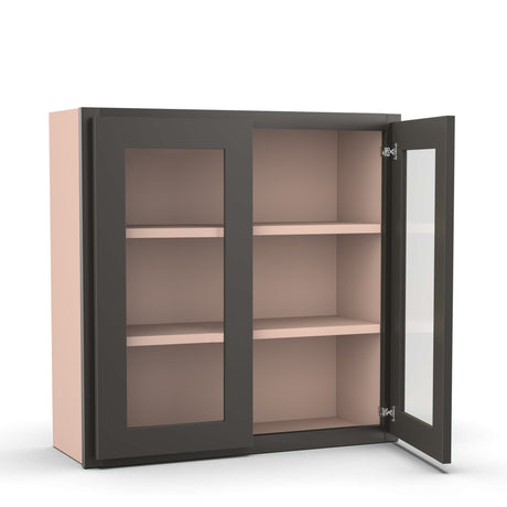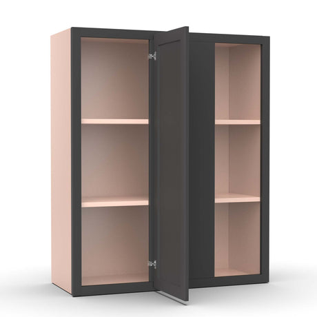 Liberty Shaker Grey - 30 Inch Double Glass Door Wall Cabinet - 30" Width x 42" Height x 12" Depth