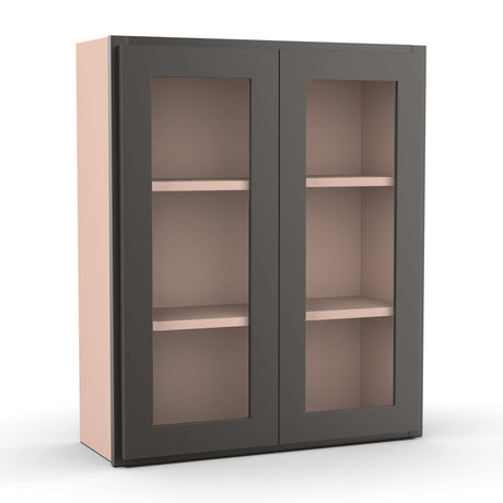 Liberty Shaker Grey - 30 Inch Double Glass Door Wall Cabinet - 30" Width x 36" Height x 12" Depth