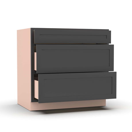 Liberty Shaker Grey - 30 Inch Three Drawer Base Cabinet - 30" Width x 34.5" Height x 24" Depth