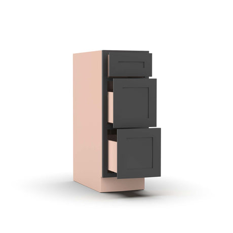 Liberty Shaker Grey - 12 Inch Three Drawer Base Cabinet - 12" Width x 34.5" Height x 24" Depth