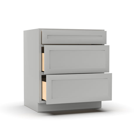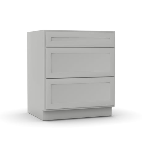 Liberty Shaker Ashen - 30 Inch Three Drawer Base Cabinet - 30" Width x 34.5" Height x 24" Depth
