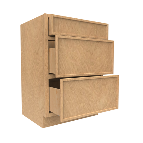 Slim Shaker Karamel - 21 Inch Three Drawer Base Cabinet - 21" Width x 34.5" Height x 24" Depth