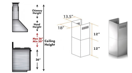 ZLINE 2-12 in. Short Chimney Pieces for 7.4 ft. to 8 ft. Ceilings (SK-KB/KL2/KL3)