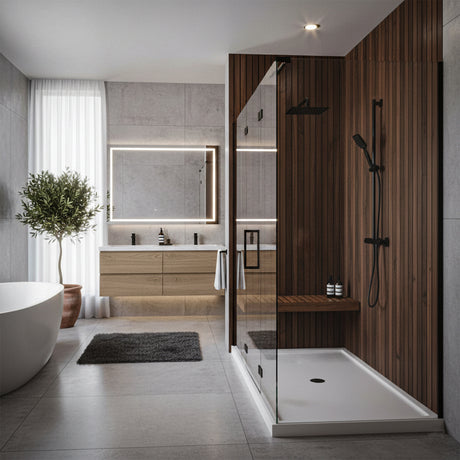 Shower Pan Right Hand Double Threshold - Acrylic and fiberglass - 60 X 36 X 3.5